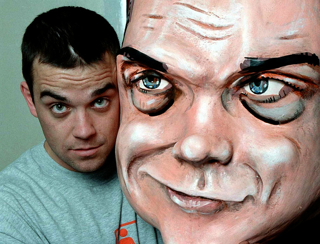 Robbie Williams with his Massive Heed, February 1999.