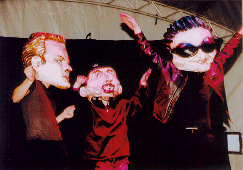 Massive Heeds Larry, Edge and Bono at the Beltane celebrations in Stirling, Scotland on Sunday 7th May 2000.