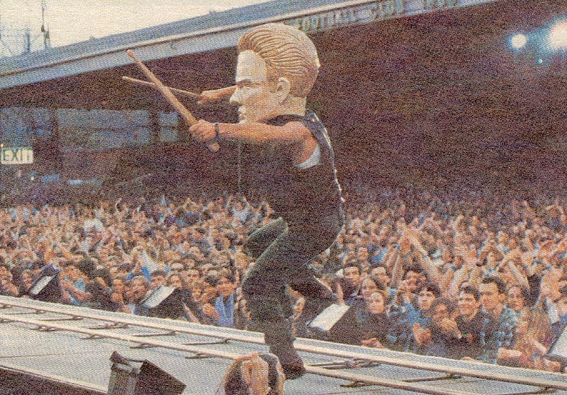 Massive Heed Larry Mullen Jr performing at Glasgow's Celtic Park, Saturday 7th August 1993.